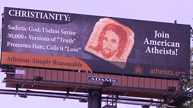 Ne nur en usono, jen bildoj de reklam-kampanjo de diveersaj landoj. Tiuj normalas, ĉar ankaŭ la ateismo ĉefe estas kredo, aŭ iaopinie, eĉ takseblas kiel religio, estante anstataŭebla kun aliaj religioj kaj formante iel la vivmanieron de individuo.