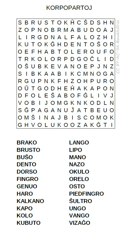 Wordsearch: Body Parts