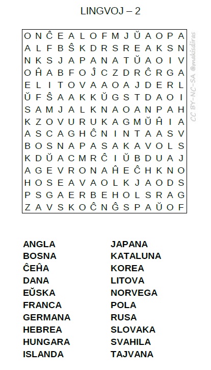 Vortserĉado: Lingvoj - 2 - Trovu la vortojn!