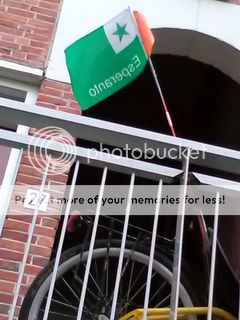 Sabate, en la mezo de la urbo (Utrecht NL), mi vidis ĉi tiun flagon alkroĉita al biciklo, antaŭ apartamento.