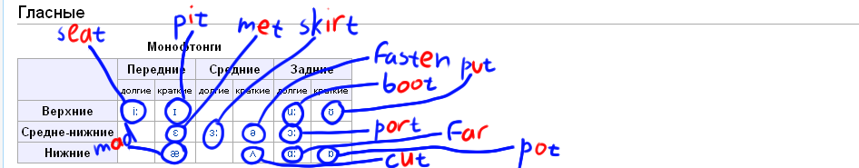 Открытость и закрытость смыслоразличительны? Только долгота и краткость — [iː] и [ɪ] (seat и sit), [uː] и [ʊ](too и to), [ɔː] и [ɒ](port и pot), [ɑː] и [ʌ] (farce и fuss). [ɛ] вообще не имеет долгого «собрата». А [æ] и [ɛ] — такие же разные звуки, как русские [и] и [ы]. [ɜː] вообще особенный. А [ə] — редуцированный звук, который появляется лишь без ударения (fasten) и который равен русскому [ъ] (звуки [ъ] и [ь] появляются у звуков [а], [о], [э] и [и], когда они редуцируются, находясь не под ударением и не в первом предударном слоге: города — [гb]ъ[/b]рада]. А вот у французов смыслоразличительные: je — [ʒb]e[/b]] и j'ai — [ʒb]ɛ[/b]].