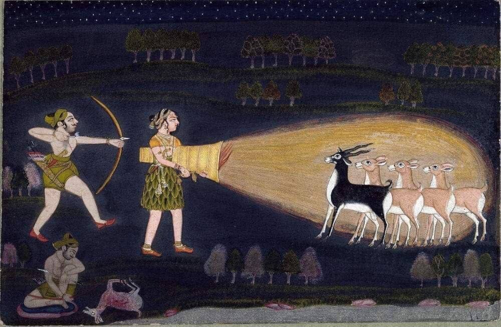 La virino tenas misteran aparaton kiu similas grandegan lanternon kaj ŝajnas influi per ĝin sur cervoj. Kia objekto ĉi tio povus esti?