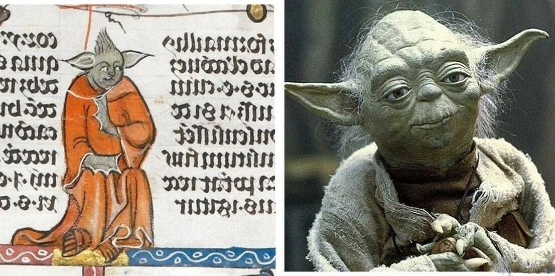 La Brita Biblioteko enhavas mezepokan manuskripton kreitan en Francio inter 1300 kaj 1340. Ĝi enhavas papajn leterojn, ekleziajn dekretojn kaj doktrinojn. Inter la ilustraĵoj estas mistera karaktero kun verda haŭto, pintaj oreloj kaj masiva robo. Kvankam Stelmilito havas nenion komunan kun ĝi, esploristoj opinias, ke tio estas nur interpreto de la biblia rakonto de Samson. Koincido?