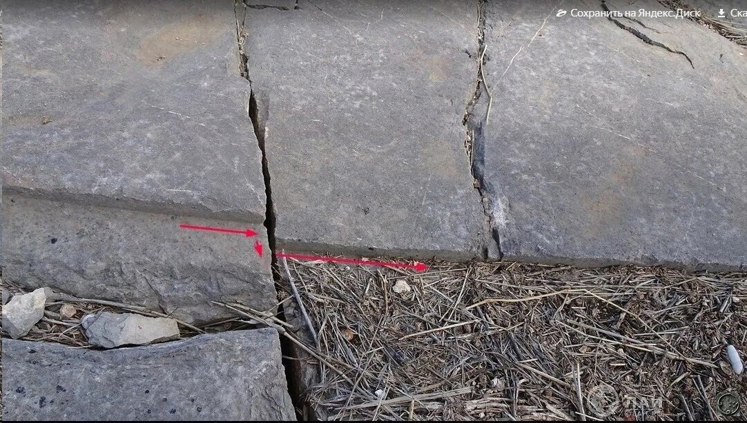 Sur la roko konserviĝis stranga marko, rememoriga pri moderna cirkla segilo, nur dekoble pli granda, kaj la surfaco estas ankoraŭ perfekte polurita.