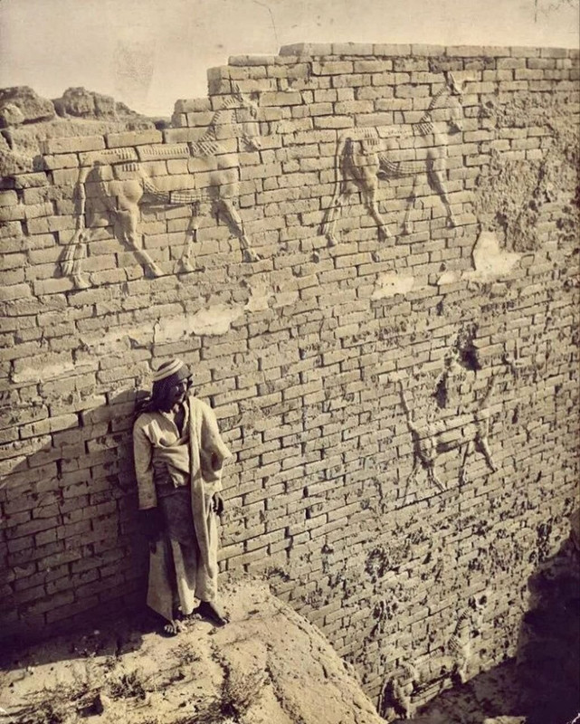 Ŝildo kun ĉi tiu titolo salutis tiujn, kiuj eniris Babelon tra la oka pordego, nomita honore al Iŝtar, la diino de fekundeco kaj karna amo, milito kaj konflikto. Ĉi tiu foto el la jaro 1926 montras la ruinojn de ĉi tiu babilona arkitektura monumento, konstruita en 575 a.K. e.