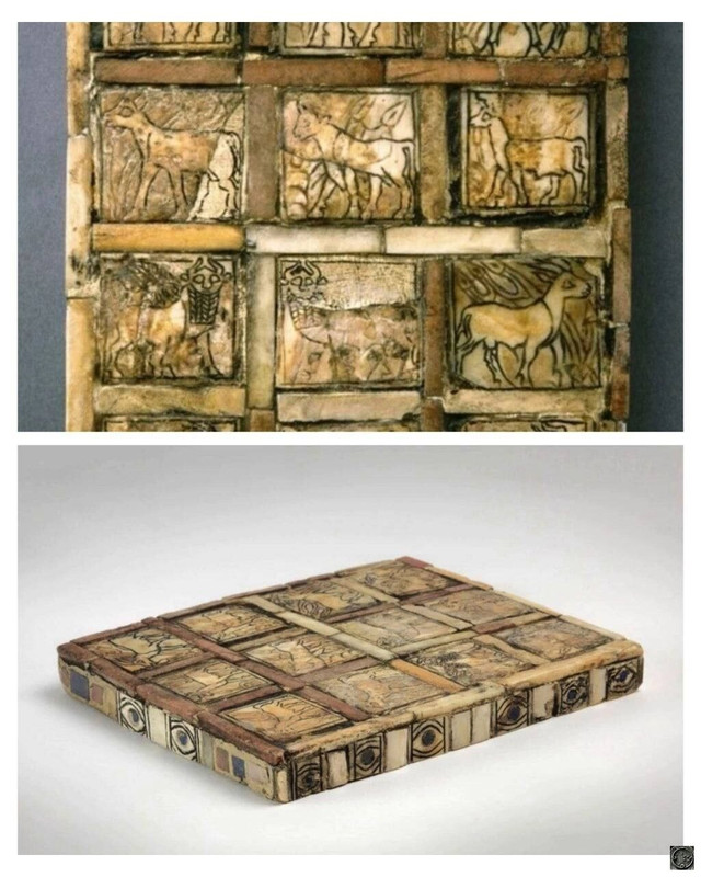 Ĉi tiu antikva ludtabulo, trovita en 1928 en la tombo de reĝino Puabi en Irako, datiĝas de ĉirkaŭ 2450 a.K.