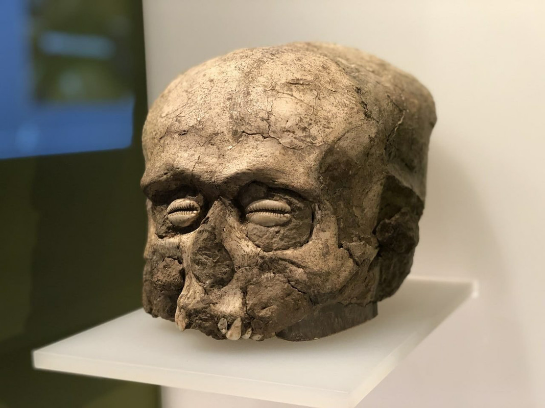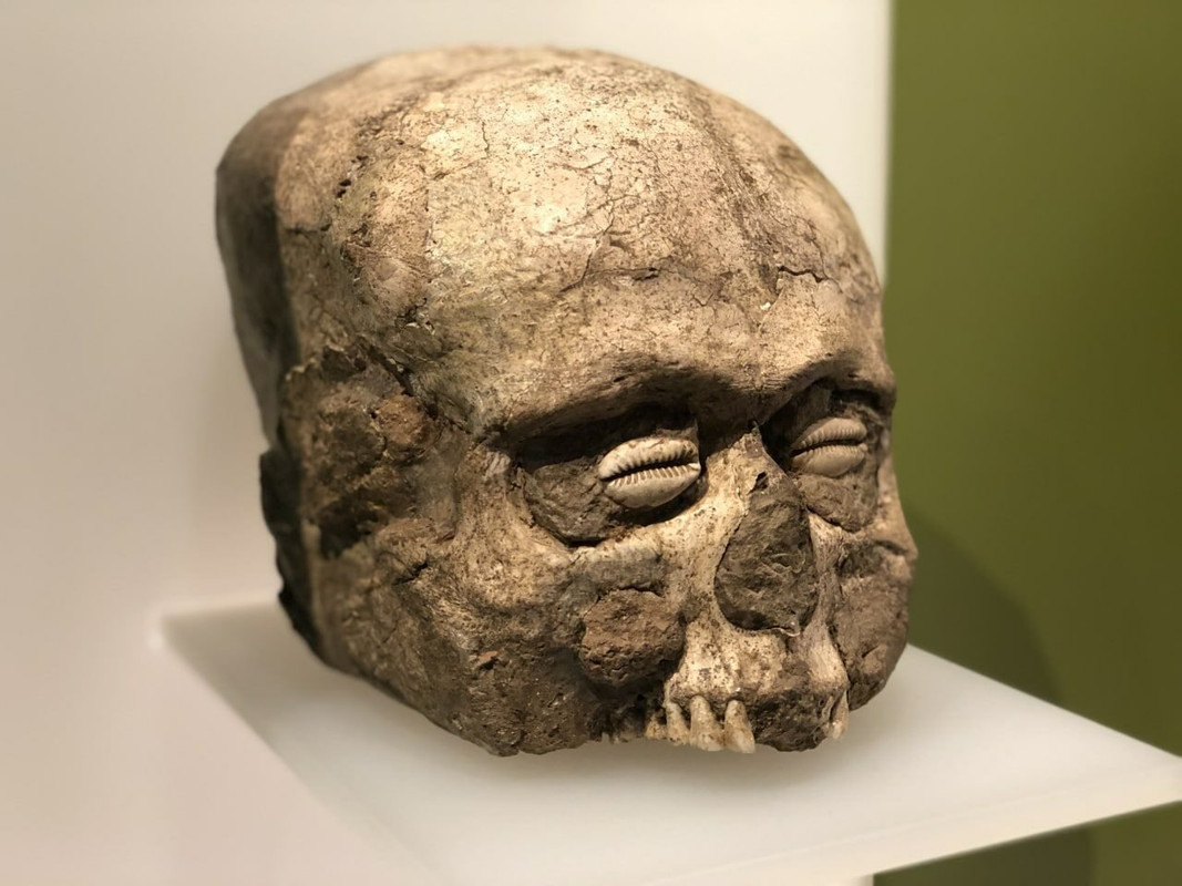 Post la morto de la homo, parto de la kranio estis forigita kaj anstataŭigita per gipso, kaj la okulkavoj estis ornamitaj per cipredaj konkoj. Tia ornamado plej verŝajne estis parto de entombiga praktiko.