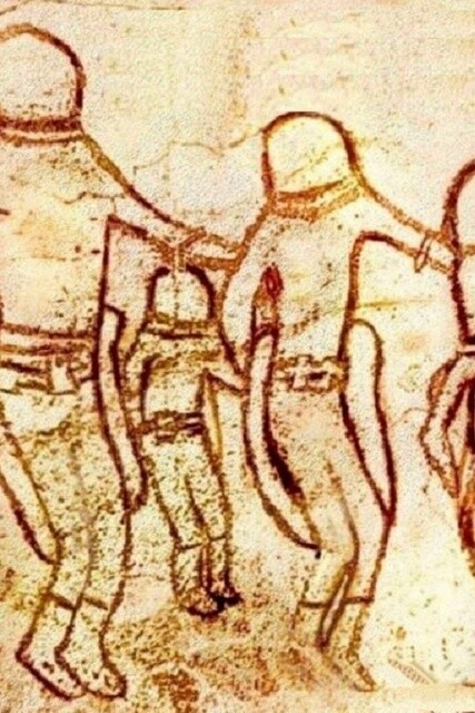Ĉu la menso de homo de la ŝtonepoko, laŭ multaj manieroj ankoraŭ primitiva, pura kaj senparĝenita de bizaraj superrealaj fantazioj, povus esti elpensinta ion tian? Plej verŝajne ne, kaj la antikva artisto simple prezentis tion, kion li vidis. Kion li vidis, eble, estis artefarita hibridiĝo farita de tiuj samaj eksterteruloj. La eksperimento klare malsukcesis, ĉar la hibridoj, kiujn ili bredis, nur supervivis sur freskoj.