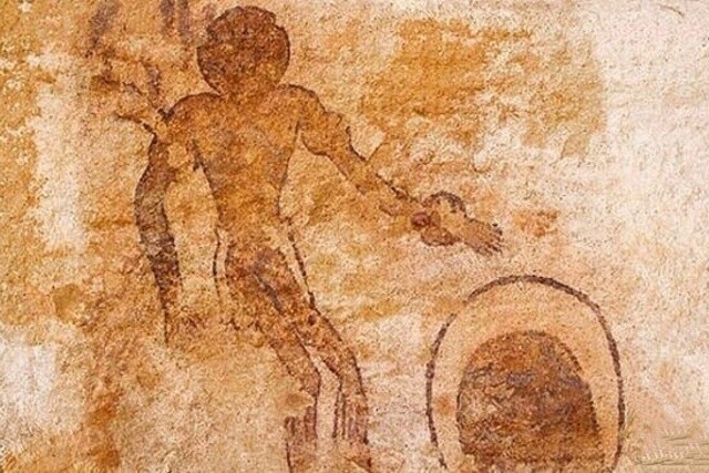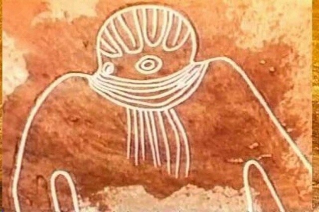 Laŭ sciencistoj, temas pri ŝamano en rita vesto. Similaj ceremoniaj vestoj troviĝas inter la ŝamanoj de Paskinsulo. Sed poste ĝi fariĝas eĉ pli interesa, ĉar kie estas Saharo kaj kie estas Paskinsulo! Ili estas apartigitaj per miloj da kilometroj da akvo. Kaj la bildoj estas similaj. Estas kvazaŭ la antikvaj artistoj de Pasko kaj Saharo vidis la samon. Sed kio precize? Kio funkciis kiel temo por tiaj teruraj "portretoj"?