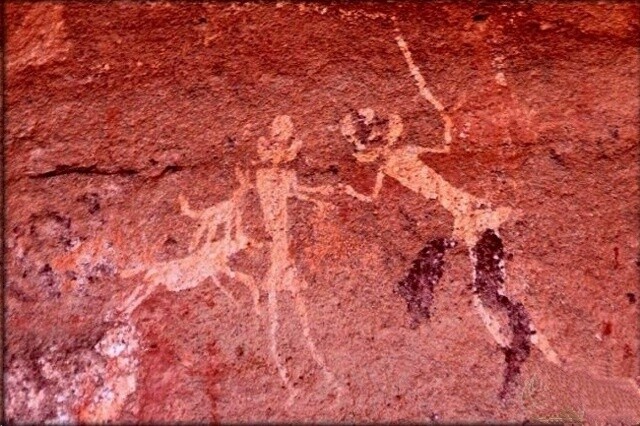 Homoj, vidante tian oazon kun abunda vegetaĵaro, malvarmeta akvo kaj abundo da bestoj, simple ne povis preterpasi. Kaj ili ne pasis. Antaŭ preskaŭ 10 mil jaroj, setlantoj loĝis ĉi tie. Preskaŭ nenio estas konata pri tiu malaperinta sahara civilizo, kiu postlasis neniujn templojn aŭ aliajn strukturojn, sed nur pentritajn kavernojn. Sed la freskoj, kiuj kovras la kavernojn de Tassili n'Ajjer, iomete malkaŝas la sekreton de mondo nun entombigita sub la sabloj.