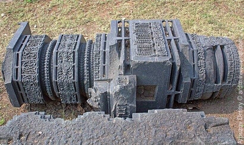 Monolita miraklo: en la templo Gauriswara (Karnatako, Barato) konserviĝis ŝtona ĉeno, ĉizita el ununura bloko. Ĉiu ligo estas parto de solida bloko, sen juntoj aŭ juntoj.