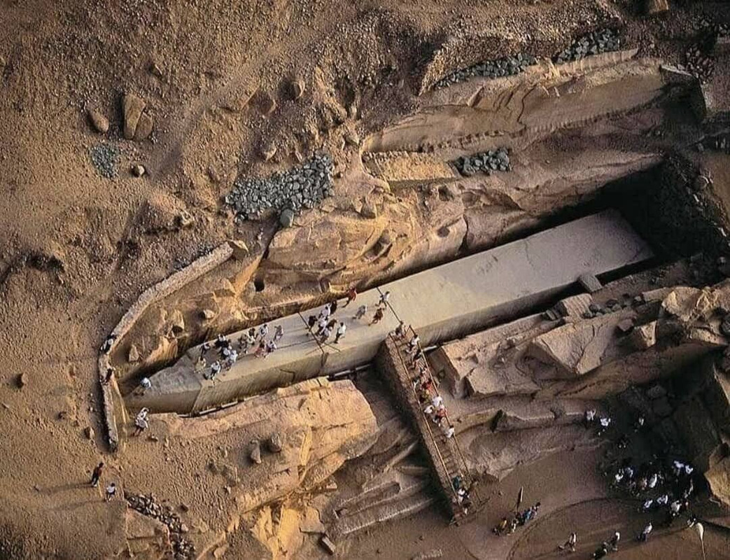 Ĝia longo estas preskaŭ 42 metroj! La dato de ĝia fabrikado estas nekonata. Ne estas ŝildoj aŭ surskriboj sur ĝi. Ŝajnas, ke la konstruistoj ne havis tempon fini ĝin. La roko estas tute ĉizita el la roko, kaj la markoj sur ĝi tre memorigas pri giganta ĉizilo.