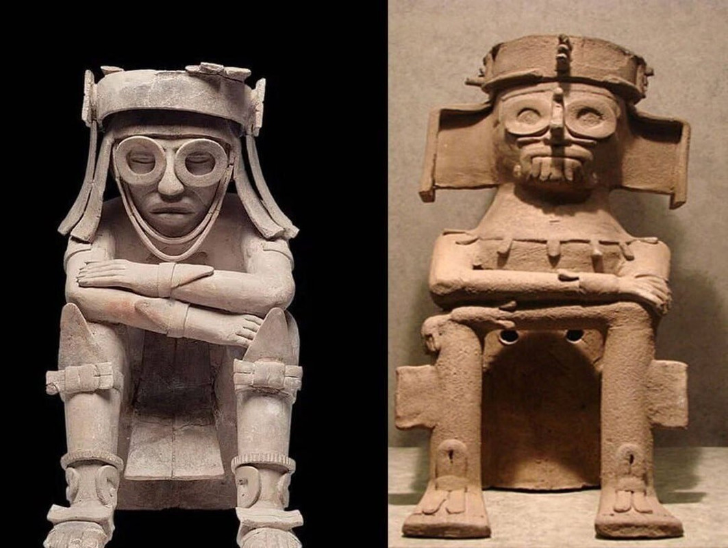 Jen skulptaĵo de la hinda diaĵo Tlaloko (dio de fulmotondroj, detruo kaj inundoj) el la Antropologia Muzeo en Meksikurbo. Tamen, kelkaj el la skulptaĵoj de Tlaloc ne aspektas diecaj kaj minacaj. Ekzemple, ĉi tie li aspektas multe pli kiel ordinara piloto el kraŝinta aviadilo.