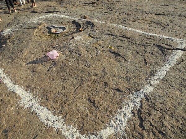 La roko prezentas homojn adorantajn eksterterulojn. Kaj la kvadratoj ĉizitaj en la rokon estas verŝajne la restaĵoj de strukturoj de iu antikva civilizo, kiu ne estas menciita ie ajn.