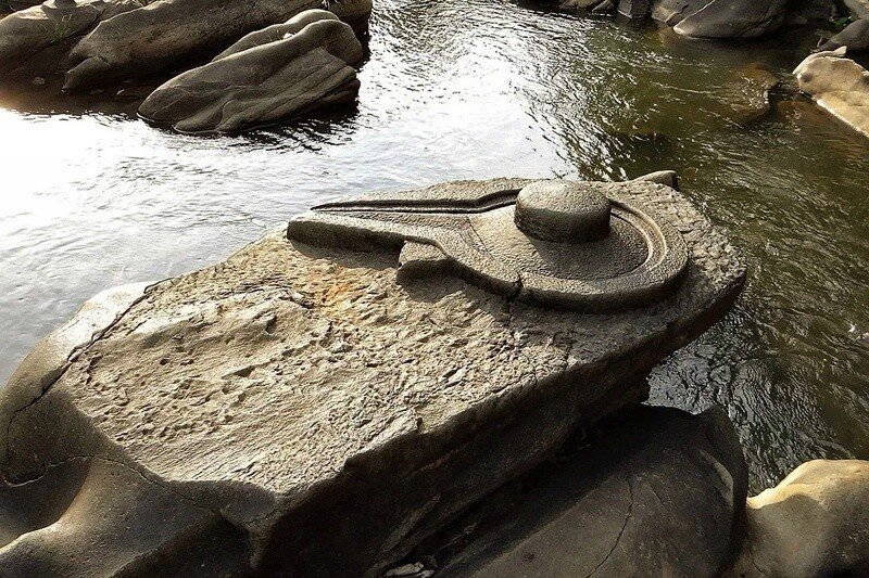 Nekutimaj ŝtonaj objektoj nomiĝas Ŝivalinga. Ĉi tiuj antikvaj kreaĵoj aperas videble kiam la akvonivelo en la rivero malaltiĝas. Ili plejparte estas kaŝitaj sub akvo.