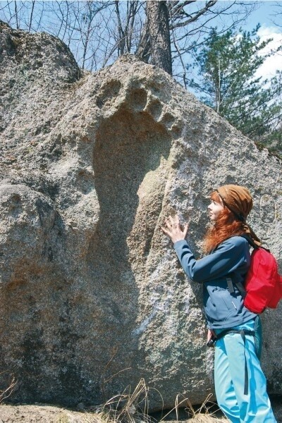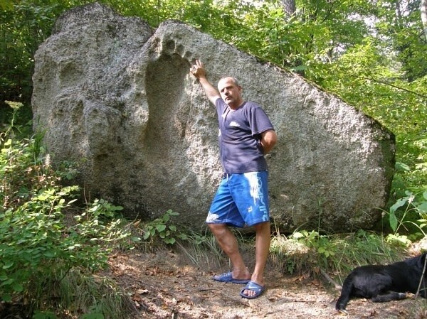 La grandeco de la piedsigno de la kalkano ĝis la pintoj de la piedfingroj estas unu kaj duono metroj. La grandega piedo estis tute premsignita. La mola roko, en kiu la giganto estis lasi piedsignon, jam delonge fosiliiĝis.
