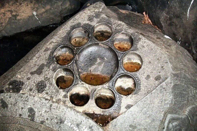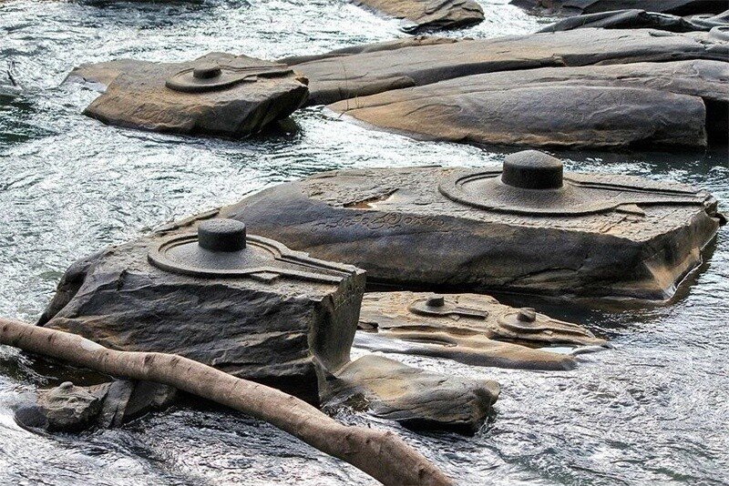 La spuroj sur la roko tute ne similas al tiuj lasitaj de martelo kaj ĉizilo. Ekzistas versio, ke ĝi povus esti farita per hidraŭlika pumpilo. Jes, akvo sub premo povas tranĉi tra la roko. Sed estas klare, ke aliaj mekanikoj estis uzitaj, ne akvo.