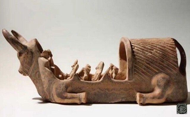 Ĉi tiu statueto aperis en 2009, kiam privata kolektanto invitis la faman italan arkeologon Massimo Vidale por ekzameni kaj taksi ĉi tiun artefakton. La sciencisto faris la taŭgan analizon (inkluzive de testado per termoluminesko) kaj determinis, ke la produkto en formo de ia stranga transportilo kun same strangaj homoj sur ĝi estis fabrikita ĉirkaŭ 2700 a.K.