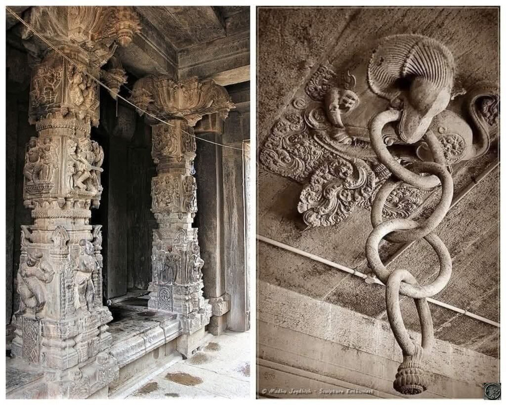 En iuj temploj en Hindio, oni povas vidi ĉenojn ĉizitajn el ununura ŝtono. Ĉiu ligilo moviĝas libere, dum la tuta strukturo estas ununura monolito. Kiel la majstroj de pasintaj jarcentoj kreis tiajn kompleksajn elementojn restas demando. Hodiaŭ, tio postulus altprecizan ekipaĵon, sed en antikvaj tempoj, oficiale, ili uzis nur simplajn ilojn.