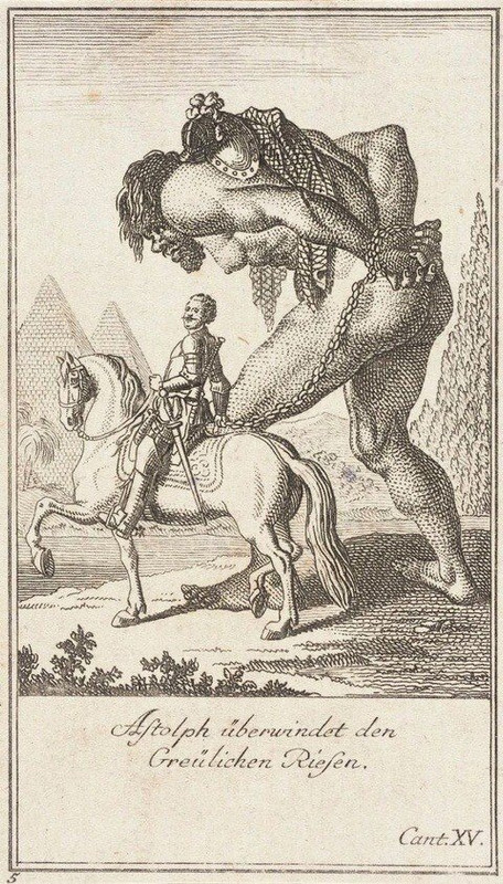 La bildo montras scenon, kie giganto estas kondukata per ĉeno. La piramidoj videblas en la fono. Sed ĉu ĉi tio vere estas bildigo de Egiptujo? Aŭ eble ni rigardas ilustraĵon de forgesitaj legendoj pri gigantoj, kiuj vivis en aliaj mondopartoj?
