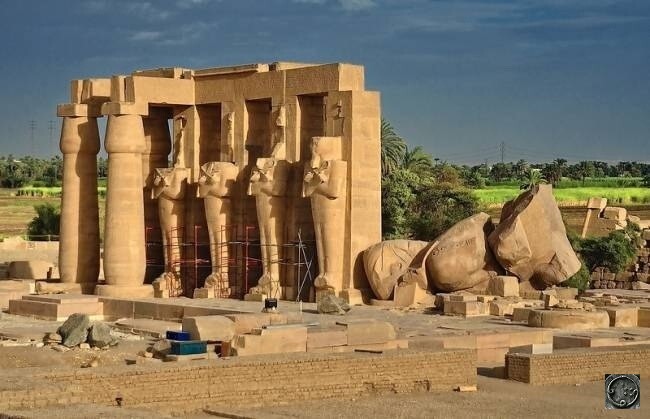Sed eĉ la grandiozeco de la koloseoj paliĝas kompare kun la fragmentoj de la giganta statuo ripozanta en la korto de la Ramesseum, la memortemplo de Ramseso la 2-a. Farita el ununura peco de rozkolora granito, la skulptaĵo atingis alton de 19 metroj kaj pezis ĉirkaŭ 1000 tunojn! La pezo de la piedestalo, sur kiu la statuo iam staris, estis ĉirkaŭ 750 tunoj. La monstra grandeco de la statuo kaj la plej alta kvalito de ekzekuto absolute ne konvenas al la konataj teknologiaj kapabloj de Egiptujo de la Nova Regno (1550-1070 a.K.), al kiu la moderna scienco datas la skulptaĵon.